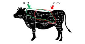 「ロース」とは部位の名前ではなくて、肩ロース、リブロース、サーロイン、そしてヒレの総称です。(※この部位の肉は「牛ロース」と表示できます、という意味です。食肉小売品質基準より)